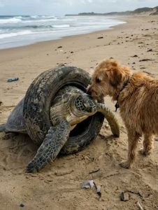 He tried to lift the tire, but it was heavy and the turtle’s shell was firmly lodged inside. The rubber had tightened around the carapace as the animal had struggled. Marcus realized he couldn’t free it with brute force without hurting the turtle further. He needed help — and tools.
