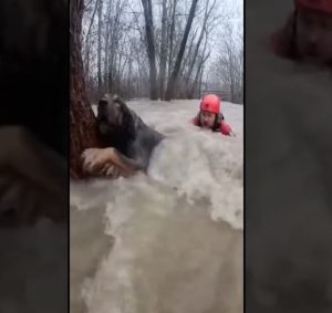 One firefighter approached slowly, kneeling to the dogโs level. He spoke calmly, keeping his hands visible.