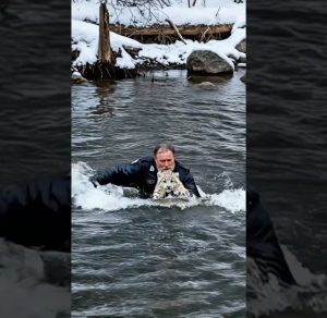 As the pair crossed a steep rocky path, the snow beneath the cub suddenly collapsed. The fragile surface gave way, and the tiny leopard slipped, tumbling down the slope before becoming trapped between two large rocks in a narrow crevice. Its frightened cries echoed through the valley, sharp and desperate.