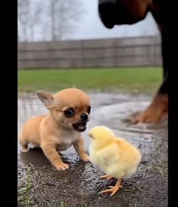 Moments earlier, Luna had been given a large crunchy treat for being well-behaved all morning. She had eaten most of it, but a small piece remained near her paws. Chico spotted it instantly. His eyes widened, and he seemed to make a quick calculation: Was it possible to steal the treat from a dog nearly ten times his size? Most dogs would say no. Chico, however, saw a challengeโand he thrived on challenges. With an exaggerated swagger, he approached the treat, barked one more time in Lunaโs face, and then reached forward with lightning speed. Before Luna could even react, Chico snatched the leftover piece of the snack. With the stolen treasure in his mouth, he turned dramatically as if performing on stage, ready to walk away in triumph. Luna simply blinked in disbelief. It was not anger she felt, but mild amusement. Chico had done silly things before, but today he was pushing his luck to a whole new level.