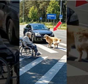 One rainy afternoon in a bustling city center, a grandmother named Mrs. Gable found herself trapped halfway across a four-lane road as the light turned green. The engines roared, and the world began to move around her like a rushing river. But before the first car could accelerate, a stray dog known to the neighborhood as “Chief” did something that stopped the city in its tracks. He stepped into the line of traffic and stayed there.