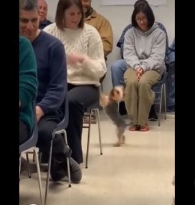 The setting was a local community center where a litter of rescued puppies was being introduced to pre-approved adopters.