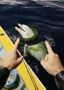 A tire. A thick, black band of rubber, cruelly swallowed her midsection, pinning her in place. The Albino dolphin โ€” rare, almost mythical in her whiteness, eyes reflecting both fear and resignation โ€” had given up hope.
