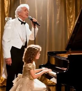 The woman’s hands moved gracefully across the keys, perfectly synchronized with her partner’s voice. She added subtle flourishes, moments of expression that elevated the song beyond mere performance. Together, their timing, their phrasing, and their shared understanding of the music created a synergy that was impossible to ignore. It was clear that they had performed together countless times, yet the emotion felt fresh, alive, and deeply authentic.