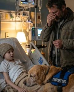 Nurse Clara felt her throat tighten. She had seen many therapy dogs visit the ward, but never anything like this. This was no trained animal. This was a broken dog who had somehow found his way here and decided these children needed him.