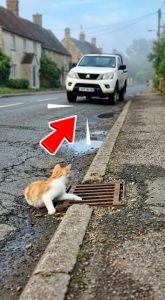 Finally, after what felt like a long and delicate struggle, the kitten reached the surface. The man gently lifted it out of the drain and placed it on the ground beside him. For a moment, the kitten did not move.