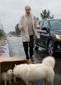 She hurried back to her car, shielding the puppies from the rain as best she could. Once inside, she placed the box on the passenger seat and turned on the heater to warm the cold, shivering animals.