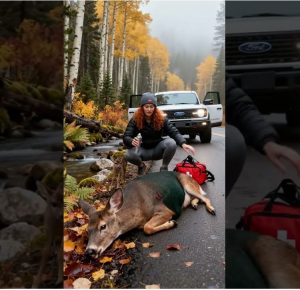 Everyone who saw the scene felt their hearts skip a beat. The car was moving fast, and the deer were frozen in the middle of the road, too afraid to move. People gasped, expecting the worst. For a moment, time seemed to stop, and tragedy looked unavoidable. But among the bystanders, there was one woman whose reaction changed everything.