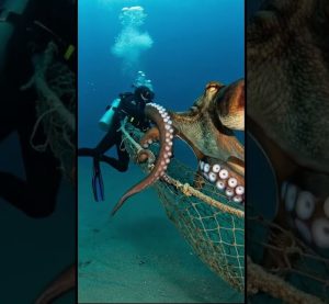 Instead, one long tentacle reached toward the tangled hose, moving with careful precision. The diver watched in stunned disbelief as the powerful limb wrapped gently around the trapped equipment.